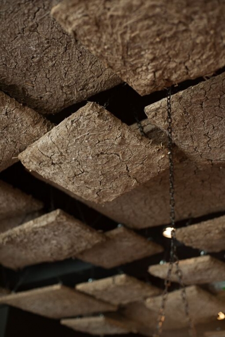The chaotic cut out ceiling hangs above, adding to the unique character, while cleverly placed lighting brightens all the right corners with a becoming luminosity.