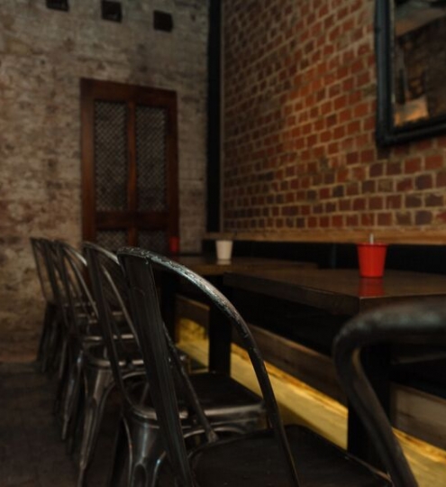 The long wooden perimeter bench seats are lit from below to appear as if floating opposite modern metal tables and chairs. Every piece has been specifically designed to complement the sociable scheme and inviting experience that is My Place. Behind the bar the sharp brick walls adorned by simple wooden shelving provide a clean and uncluttered storage space, giving an old world feel to this urban experiment.
