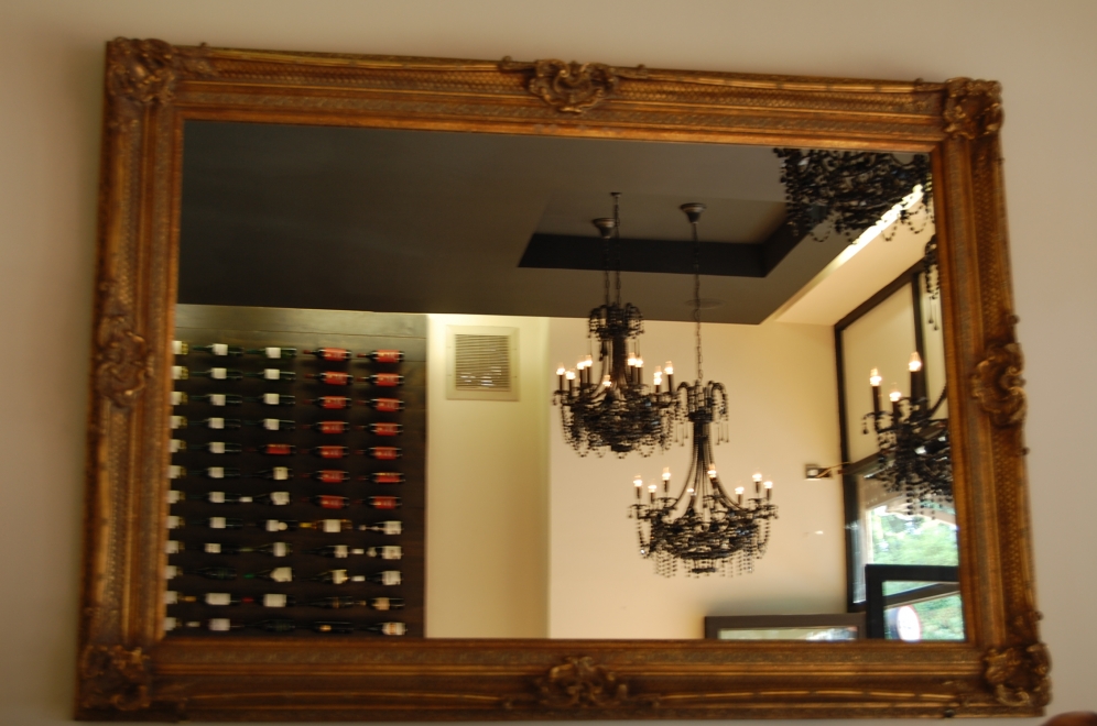 To cast an atmosphere of intimacy, 4M matched elegant period feature chandeliers to suspend like grapes on a vine from the ceiling, and fastened a lavish, gold encased mirror by the front entrance, expanding the horizon of the room, enabling guest to glance at one another in circularity.