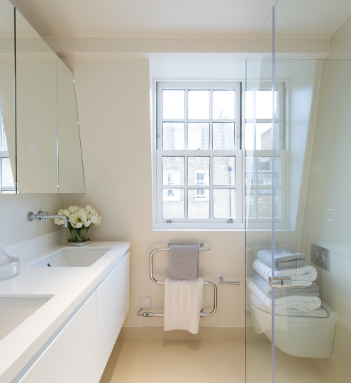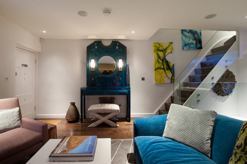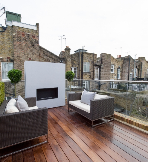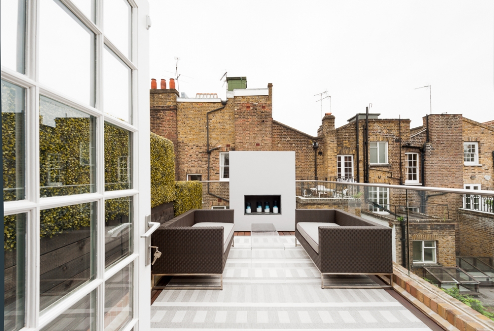 Concealed within the bedroom, leads a stairway to an intimate outdoor terrace - complete with an log burning fireplace, to warm chilly London evenings spent under the stars.