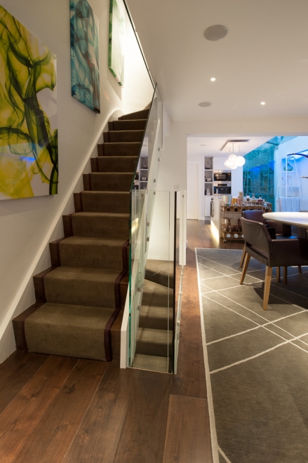 Remodelled with an emphasis on space and symmetry, the existing space was completely gutted, and the basement was excavated to accommodate additional living rooms, laundry and cinema.