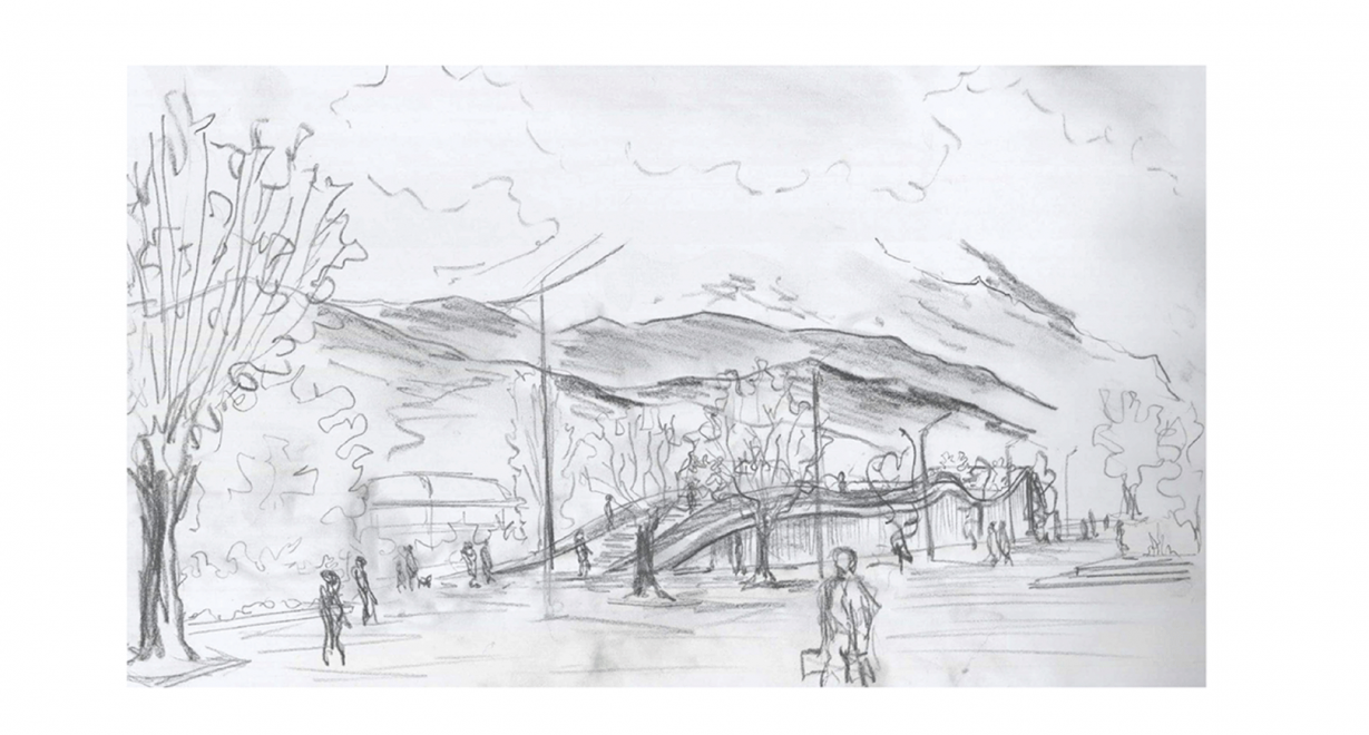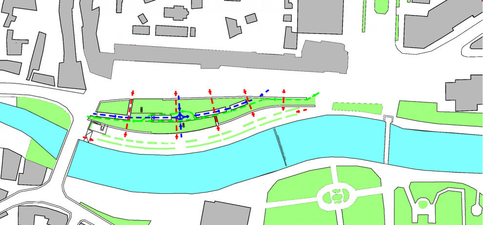 the town centre, by intertwining the visual link of