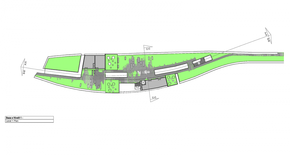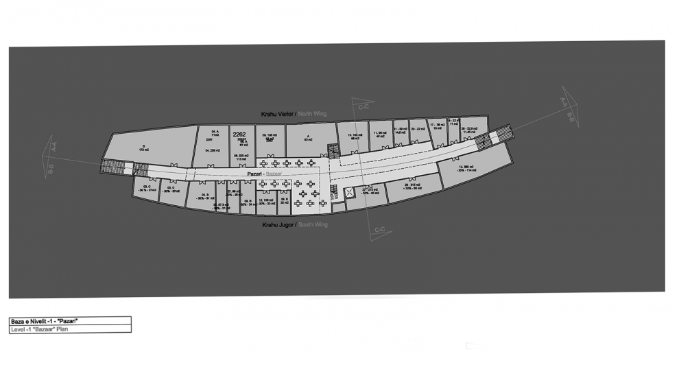 On top of the shops, the promenade level raises the
