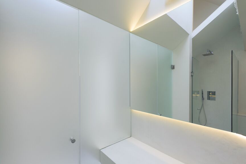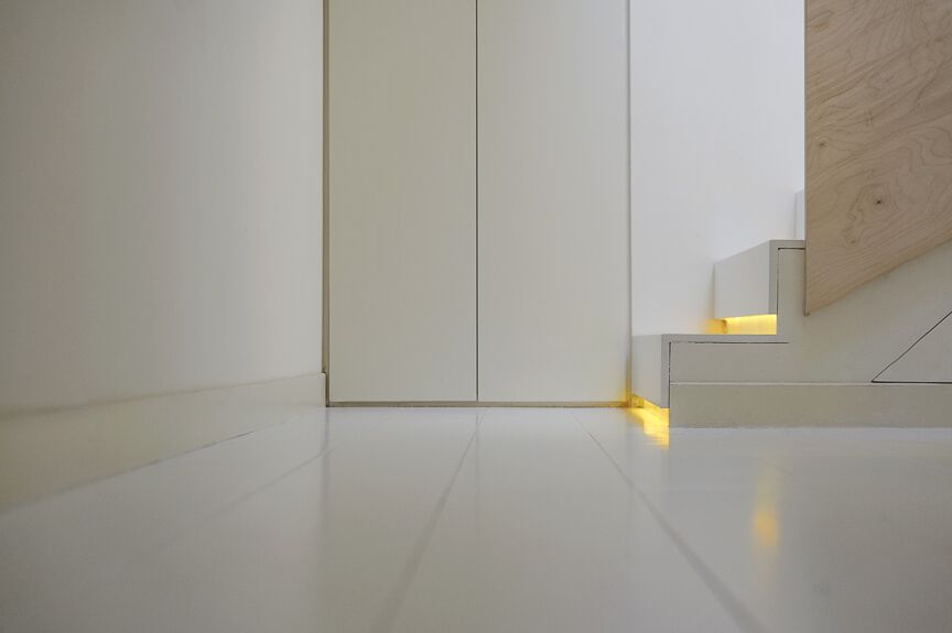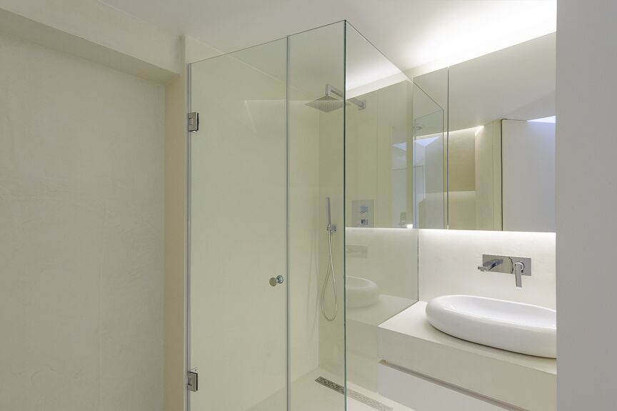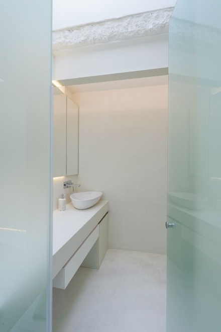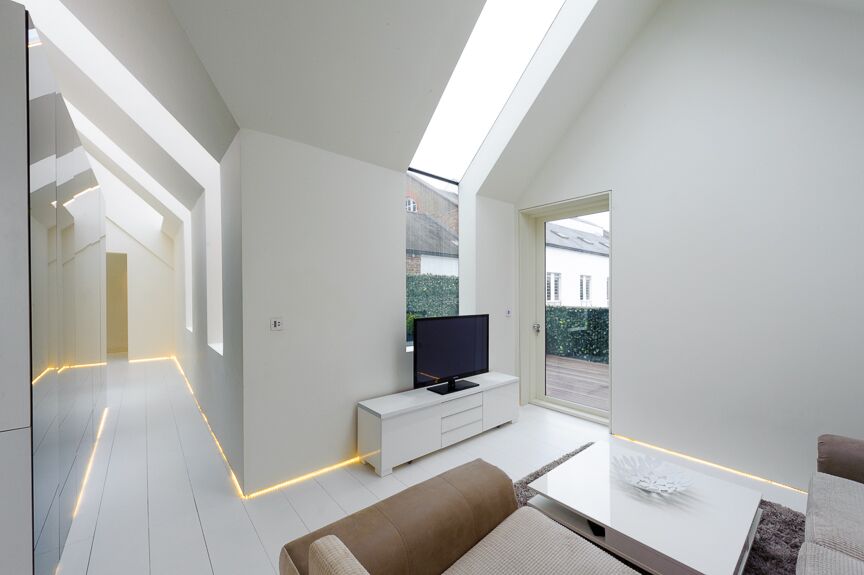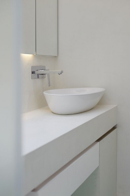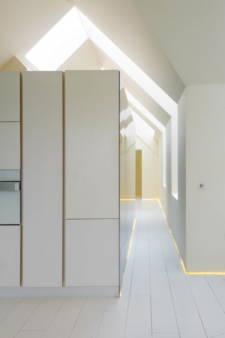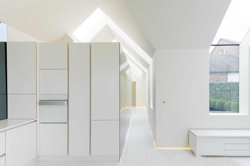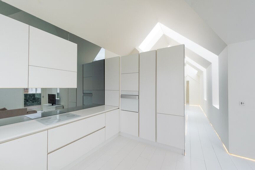 sleek white cupboards, provides an uncluttered and relaxed