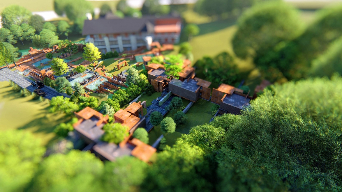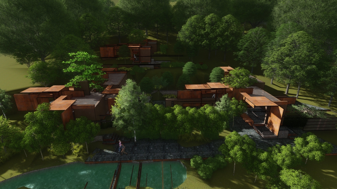 Lodges Utilization of the terrain configuration and garage contents of that area, on which there can be construction, but always creating topography and an environment similar to that of the surroundings. The lodges are arranged in small groups, offering compactness on one side and privacy on the other. The views from the lodge are oriented towards the natural environment, removing visual communication with the main hotel building. Capacity of 9-12 one/two room units. |