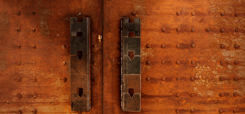 Chairs, cushions and tables designed by 4M and were handmade by local artisans, wood and leather makers. The grand metal doors were corroded for several weeks prior to installation, and a second set of doors were installed at the entrance. They were also both made out of reclaimed oak and were installed by local specialists.